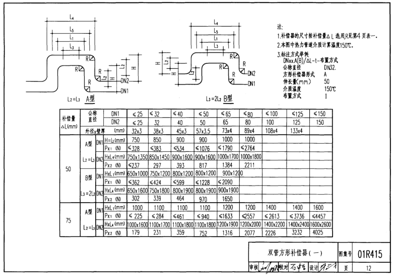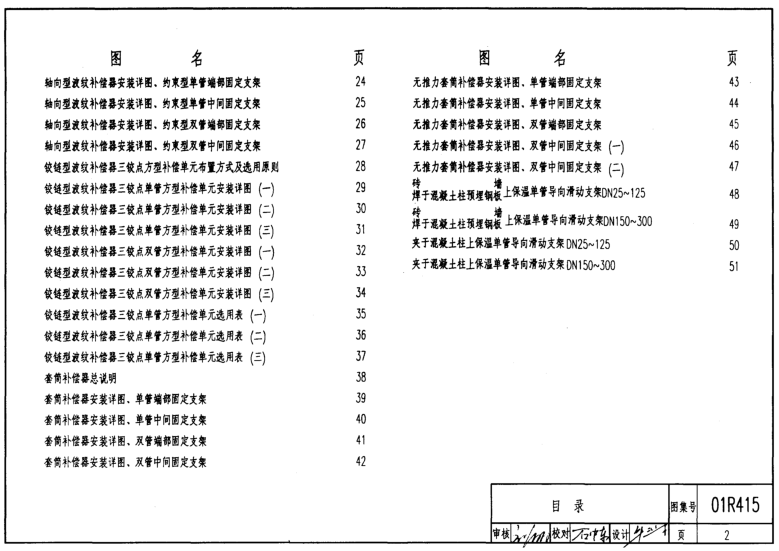 本图集为热力管道安装图集,用于一般工业及民用建筑室内热力管道的设计安装和施工,图集给出热力管道方形、波纹、套筒补偿器三种补偿方式的安装图、选用表及固定支架。