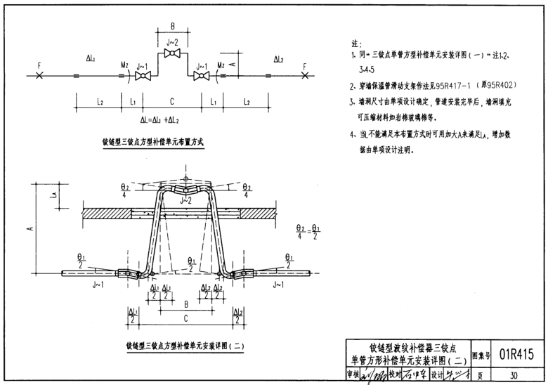铰链型波纹补偿器三铰点单管方型补偿单元安装详图(二)30