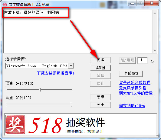 1、运行软件,输入需要转换成语音的文字,单击朗读即可。