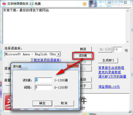 2、可循环播放,单击“读N遍”进行设置。