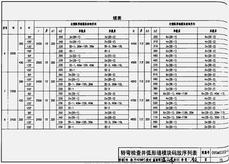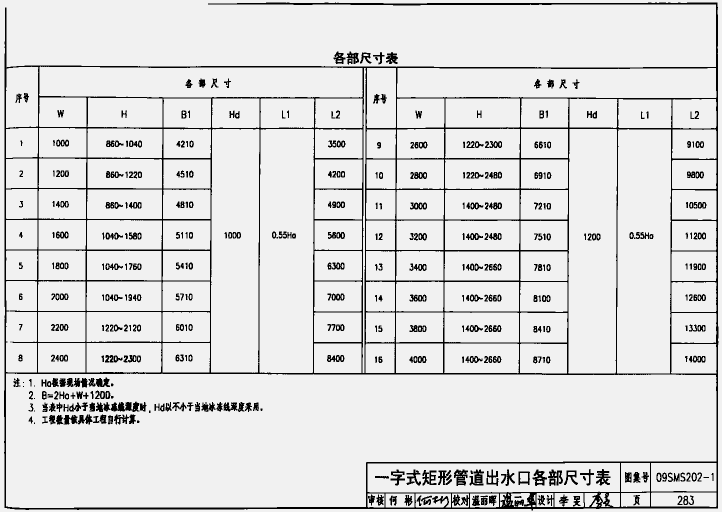 09SMS202-1《埋地矩形雨水管道及其附属构筑物(混凝土模块砌体)》国家建筑标准设计图集适用于抗震设防烈度为8度(0.20g、0.30g)及8度以下地区市政工程中的重力流雨水矩形管道及使用工况类似的其他市政矩形管道设施。矩形管道为单孔矩形管道,管道宽度W自1000mm至4000mm,管道高度H自860mm至2660mm。矩形管道盖板以上设计覆土深度在0.8~5.0m之间。管道的适用最大设计流速宜为5.0m/s,最小满流设计流速应为0.75m/s,管道的粗糙系数n值建议采用0.014。主要内容包括矩形管道及其附属构筑物两部分的施工详图。矩形管道为单孔矩形管道,由预制钢筋混凝土盖板、专用混凝土模块灌孔砌体墙及现浇钢筋混凝土底板三部分组成。附属构筑物部分包括:直线检查井、转弯检查井、90°三通检查井、90°四通检查井、跌水井以及出水口。检查井均为混合式结构,由井筒、预制钢筋混凝土盖板、专用混凝土模块灌孔砌体墙及现浇钢筋混凝土底板四部分组成。出水口为浆砌块石砌体或素混凝土结构。为了解决市政雨水排水矩形管道技术复杂的难题和用混凝土模块砌体替代粘土砖,首次编制了该图集。用于埋地矩形雨水管道及其附属构筑物(混凝土模块砌体)的选用和施工。