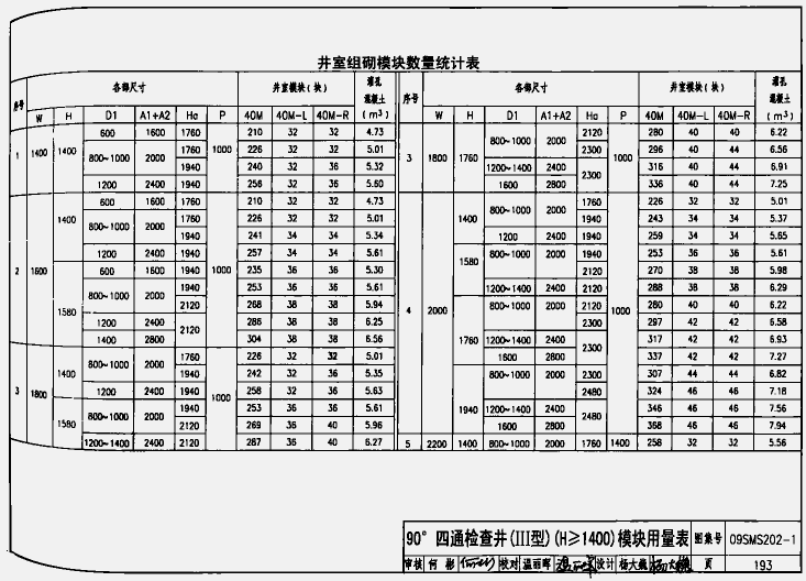 90°四通检查井(Ⅲ型)(H≥1400)模块用量表193