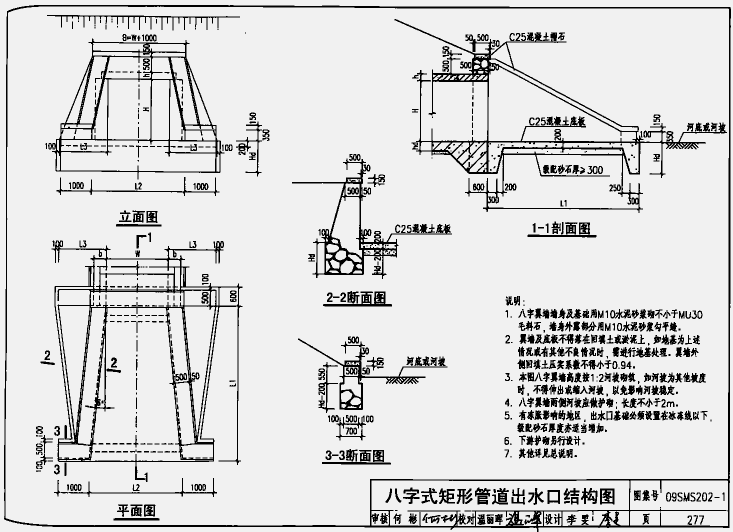 八字式矩形管道出水口下游护砌(Ⅰ型)279