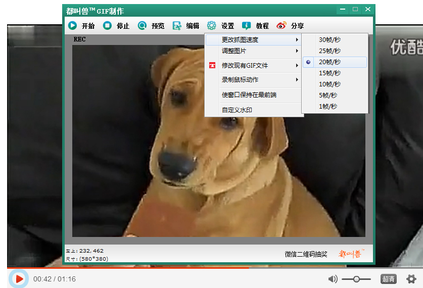 更改抓图速度:抓取屏幕的帧速度,帧数越大画面越连贯,gif文件越大