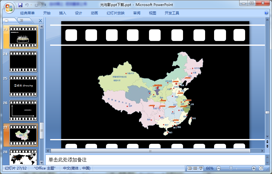 光与影动态ppt采用了黑白电影胶片效果,给我们讲诉了生活、感动、成长内容,以灯泡、胶片等素材,非常的具有艺术气息。这份ppt共计32页,有需要光与影ppt或是电影胶片效果ppt的朋友点击下面的地址即可免费下载这份素材。