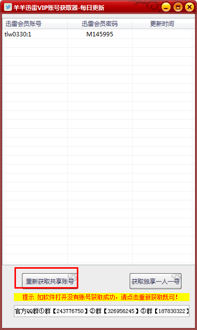 使用迅雷的会员下载功能能够有效的提升下载速度,为了让大家都能够用上迅雷账户,羊羊迅雷VIP帐号获取器直接为大家免费提供各种迅雷VIP会员账号,想要免费使用迅雷会员下载功能的就来下载试试吧。