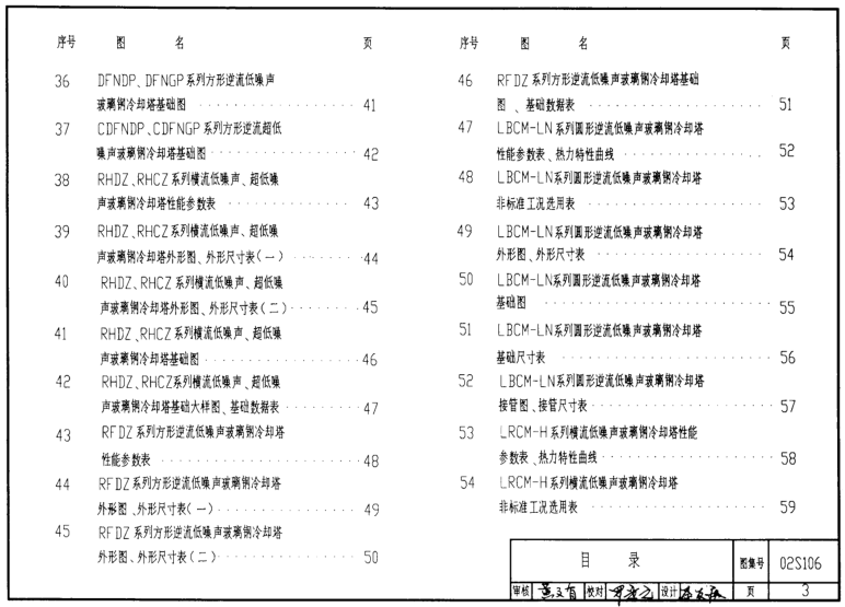 RFDZ系列方形逆流低噪声玻璃钢冷却塔性能参数表 48