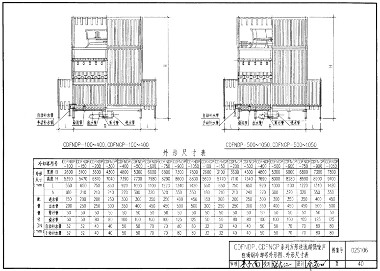 CDFNDP、CDFNGP系列方形逆流超低噪声玻璃钢冷却塔外形图、外形尺寸表 40