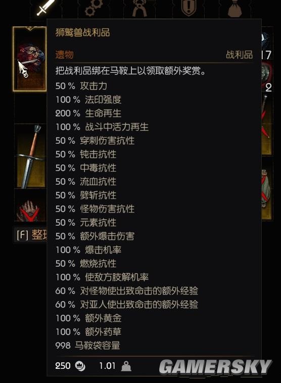 巫师3狂猎狮鹫战利品强化补丁说明