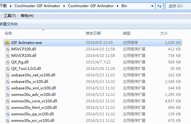 2、双击运行“Coolmuster GIF Animator\Bin\GIF Animator.exe”即可。