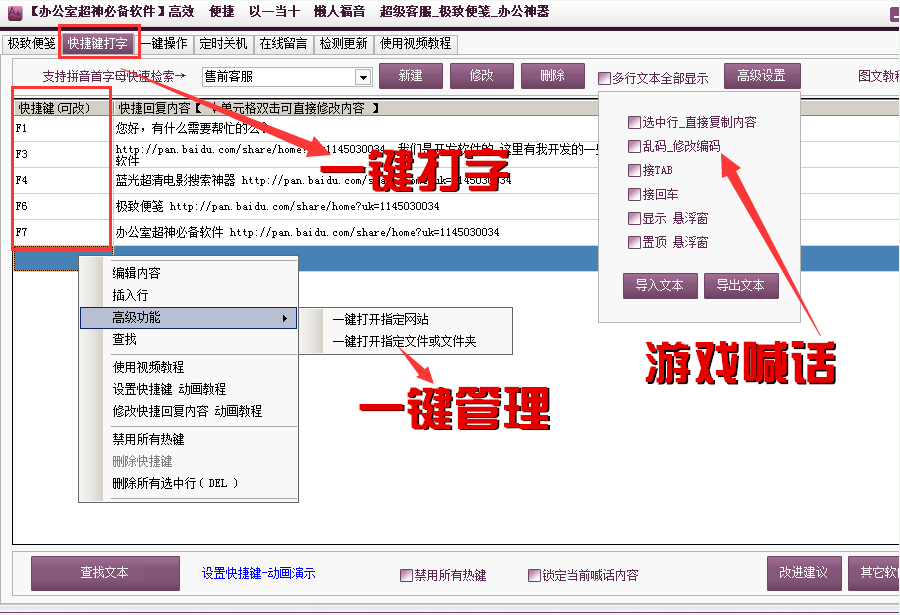 使用办公室超神必备软件可以帮助快捷的进行工作,支持自定义热键快捷调用回复内容,便签,快捷打字,定时关机等办公常用功能,大大提高了办公效率。
