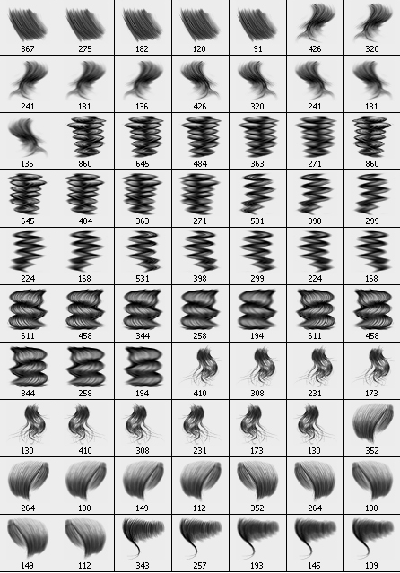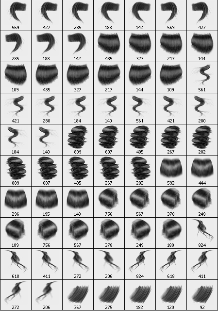 这里是200款ps发型笔刷,长发,直发,卷发,刘海,发丝·····应有尽有,点击下面的地址即可免费打包下载这份200款ps发型笔刷(photoshop头发笔刷)素材,abr格式文件,导入画笔后就可以使用了。
