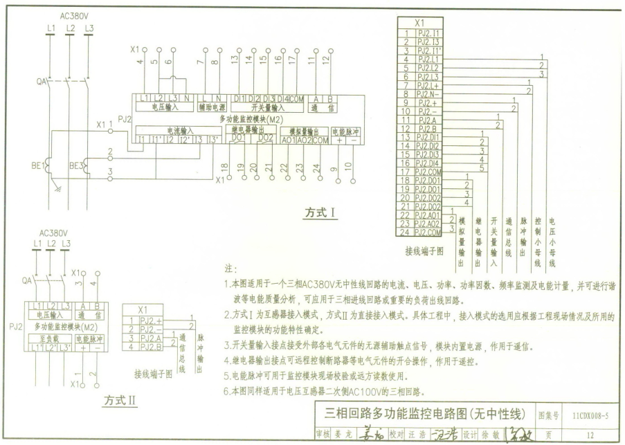 11CDX008-5《电能计量管理系统设计与安装》以国家现行有关标准为依据,结合用电设备分项分类计量管理要求,介绍电能计量管理系统的组成和功能,提供用电设备能耗监测与分析管理的设计方案。重点介绍电能计量系统拓扑结构图,直流、交流单相和三相用电设备电能计量、监测的电路图。给出了电能计量管理系统的示例和电能计量装置选型及相关技术资料,供设计人员选用。