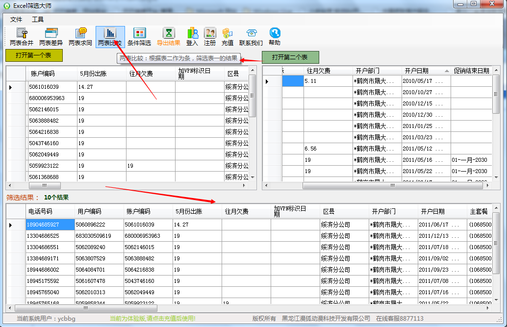EXCEL表格数据筛选大师、是为统计工作者开发的一款数据筛选表格软件、让不会使用函数的人能够轻松使用、不再为复杂的函数而苦脑、上千上万的数据轻松搞定、这款强大的Excel比较工具可以帮助用户快速处理大量的Excel文件,让工作简单一些是我们软件的宗旨。并且提供在线客服人员为您解决遇到的相应问题。