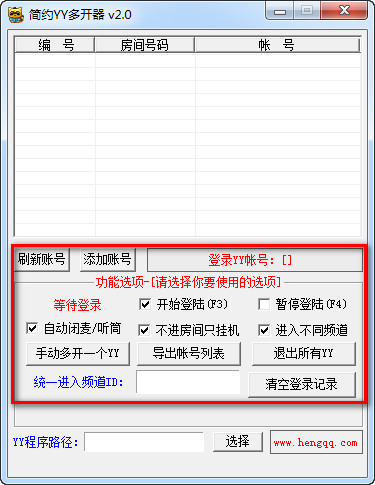简约YY多开器是一款功能强大专门针对YY账号多开的最新辅助工具。它界面小巧、绿色无毒,能够帮助用户在同一台电脑进行多个YY账号多开操作,快速提升YY频道人气。