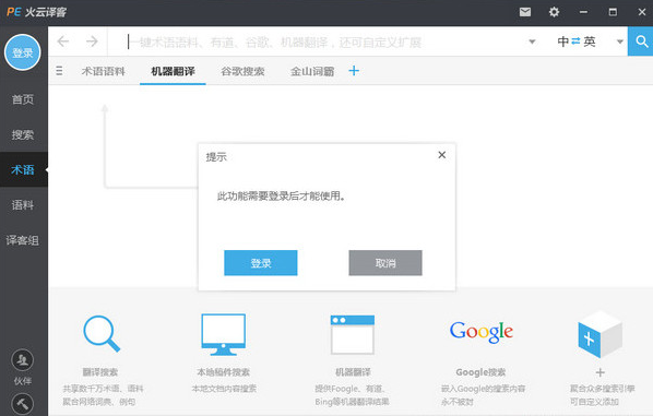 平台继承并延伸了原火云术语的查词功能,同时加入了本地稿件搜索、谷歌搜索等选项,让用户得