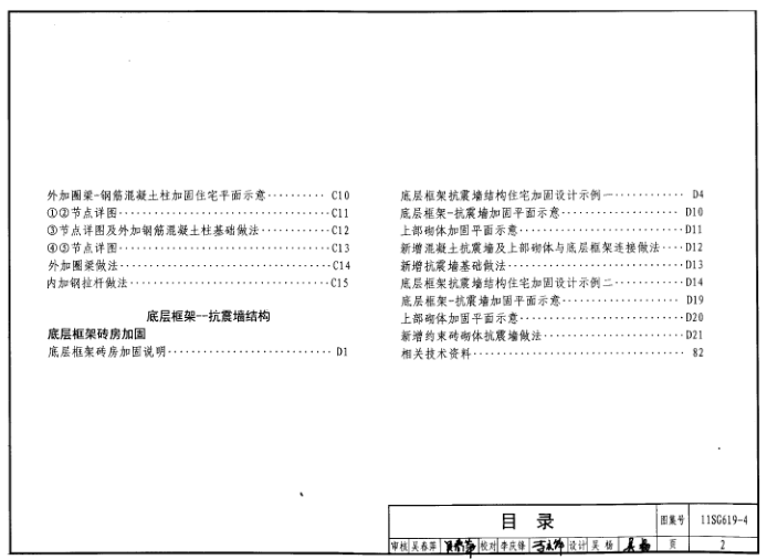 11SG619-4房屋建筑抗震加固(四)砌体结构住宅抗震加固图集——通常被简称为11sg6194图集,它是一份适用于抗震设防烈度6~8度地区,抗震设防分类标准为丙类、经抗震鉴定后需要进行抗震加固的砌体结构及底层框架抗震墙砌体结构住宅的常规抗震加固的参考图集。本节内容小编为大家整理带来的这份11sg6194图集为pdf格式清晰完整电子版,如果你需要这份图集的话,点击本文相应的下载地址进行下载即可!该图集共有88页,内容完全免费,希望对大家有所帮助!