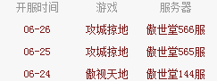 傲世堂部分开服表