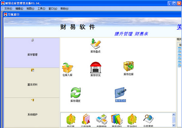 财易仓库管理软件以库存业务为基础,整个系统一体化设计,功能流畅,操作方便,界面美观友好,是您库存管理的好帮手!