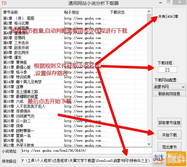 本软件只是为了方便书友便捷的下载小说而编写的,主要功能,通过自定义规则对小说网站进行分析,然后下载小说.具体请看图片