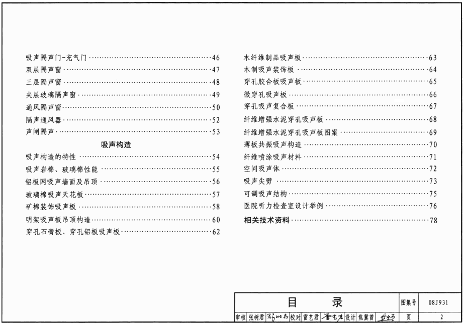 本图集适用于新建、改建和扩建的各类民用建筑中对声学有要求的建筑和房间,以及民用建筑中配套的水泵房、风机房、空调机房、锅炉房等设备用房的隔声与吸声构造。主要包括建筑隔声构造和建筑吸声构造两部分,主要有建筑外墙、内隔墙、楼板、吊顶以及门窗等部位的隔声与吸声构造,同时提供相应的技术数据以方便设计人员使用。本图集内容丰富,能有效地指导建筑设计人员进行建筑隔声与吸声设计和施工人员施工。