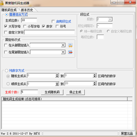 这款黑营随机码生成器支持输入想要生成随机码的位数,批量生成随机码的个数,是一款实用的随机码生成工具。