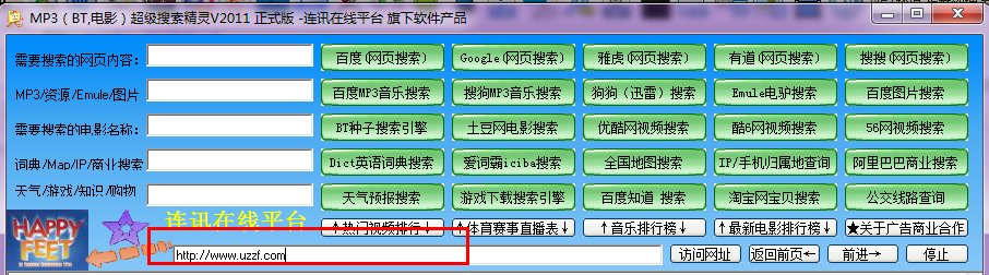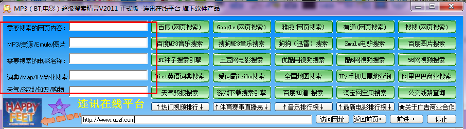具有速度快且搜索准确,她提供了网页搜索模式、MP3文件搜索模式、BT文件搜索模式、电影文件、英语词典、IP地址查询与手机归属地查询,此软件为免费软件,我们会不断进行升级的,还等什么大家快来享受美妙、快捷的冲浪乐趣吧!