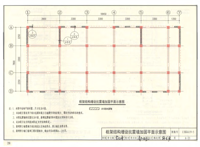 框架-抗震墙结构增设粘滞型消能器加固平面示意图 A-49