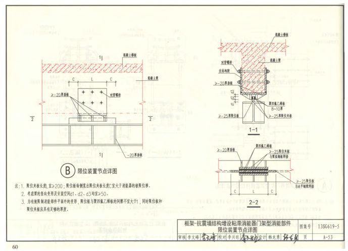 框架-抗震墙结构增设粘滞消能器门架型消能部件限位装置节点详图 A-53