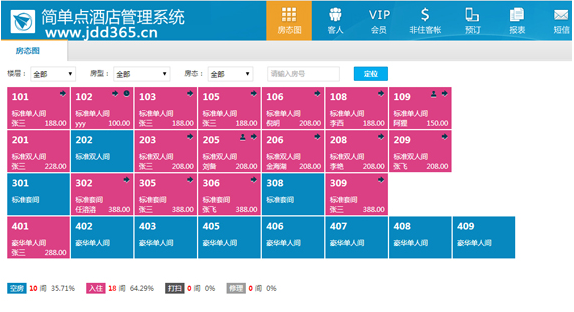 简单点酒店管理系统(又称:简单点PMS)是一套国内领先的中小酒店免费酒店管理系统,为用户免费提供在线酒店客房管理软件服务,有需要的赶紧来下载使用吧。
