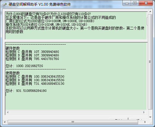 硬盘空间解释助手主要功能可帮助您来自动检测硬盘空间的详细大小及使用的情况,让您对硬盘的信息时刻了如指掌,欢迎下载使用。