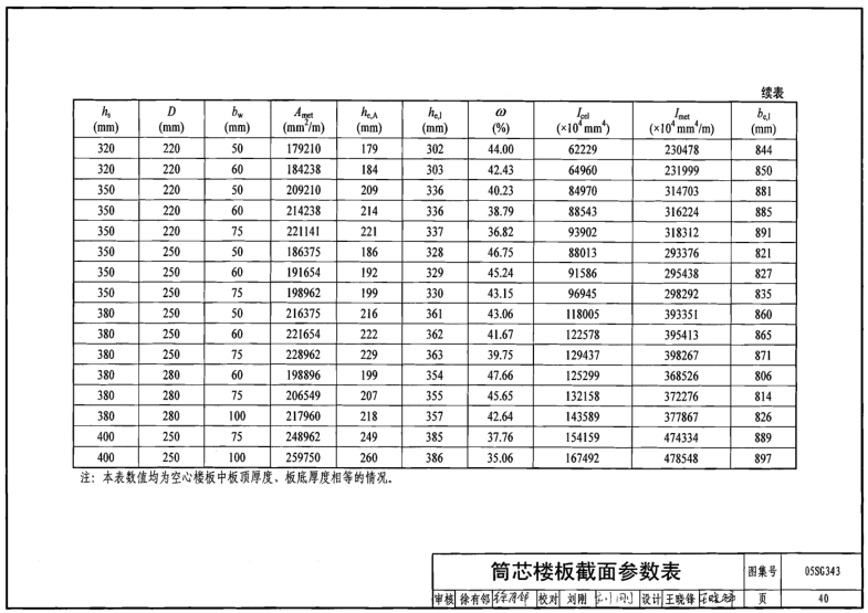 筒芯楼板截面参数表39