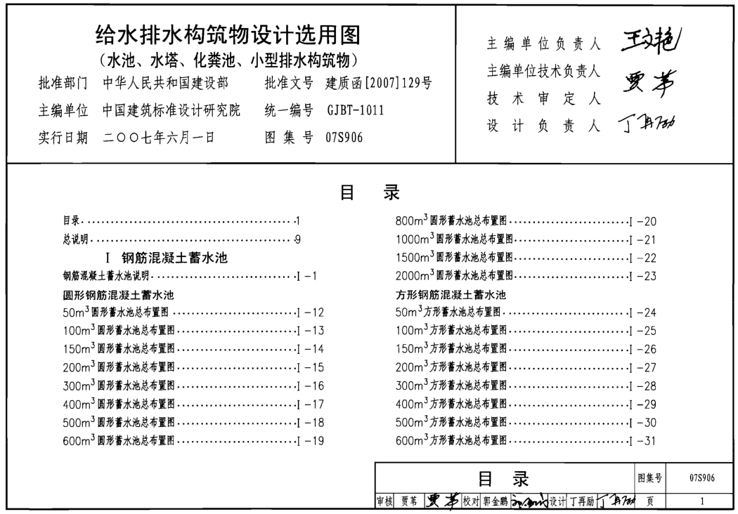 现行蓄水池、倒锥壳水塔、化粪池和小型排水构筑物国标图集中,与给排水设计选用有关的设计条件、工艺图纸和选用补充说明等。