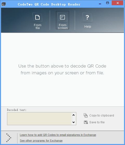 有两种s识别模式,一种是直接载入二维码图片,另外一种则是内置截图选取器,点击“From screen”截取屏幕上的二维码!
