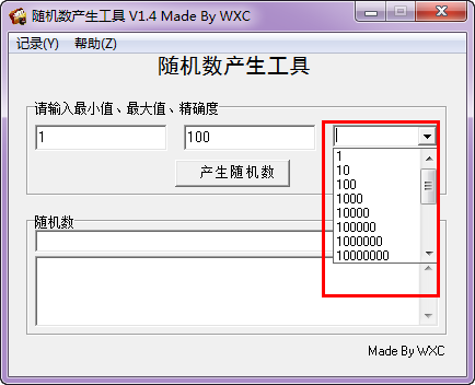 随机数产生工具是一款功能强大的随机数生成器,支持生成指定范围内的几乎所有精度的整数和小数,且支持记录生成的随机数,以及将记录保存至扩展名为rand(随机数记录文件)或txt(文本文件)的文件,读取已保存的随机数记录,添加已保存的随机数记录。