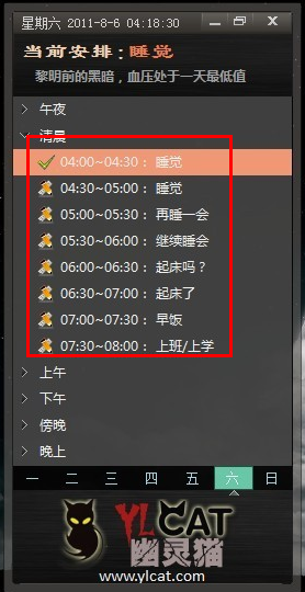 幽灵猫作息管理器为您提供了可自主设定的作息提醒功能,在重要的作息时刻系统会自动弹出作息提醒,以免您错过重要的作息安排。