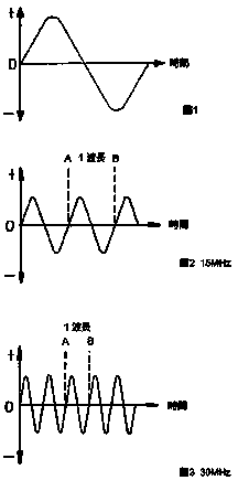 波长:短波广播中常常听到的另一种称呼"米波段"或"公尺波段"(Meter Band),这指的就是波长,也就是从天线发射出去的电波一个周期之间的距离。假设图2中的无线电波是15MHz,那么它的波长指的就是从A点到B点的距离。如果每秒的周期数目加倍,就变成30MHz,也就是图3。观察图2、图3两波形,便可发现15MHz每周期中含有30MHz两个周期,也就是说频率愈高,波长就愈短。