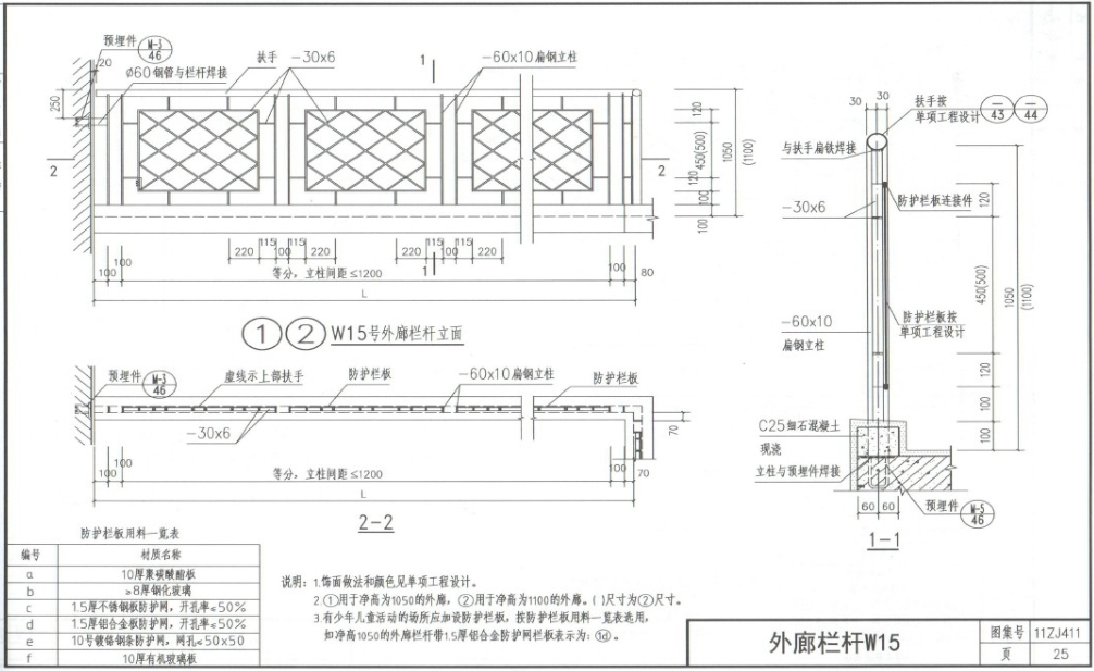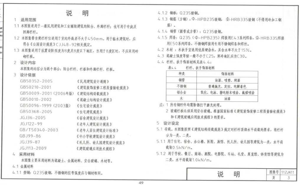 本图集的内容分为两个部分:阳台栏杆、栏板和外廊栏杆、栏板。