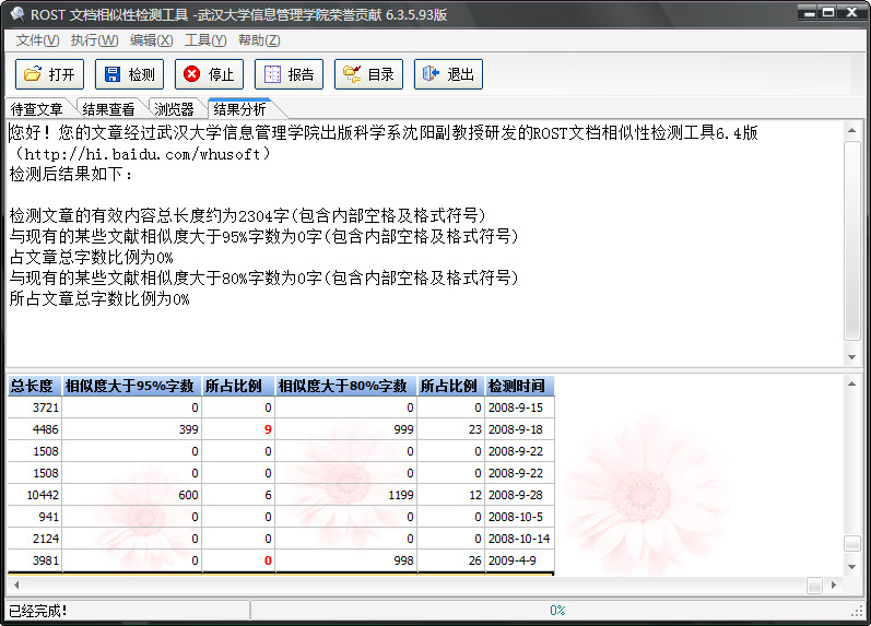 6.方便的结果分析功能,自动分析文档相似结果,给出评价意见。