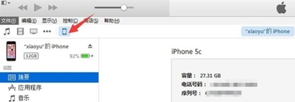 2、运行iTunes并连接设备,点击左上角图标进入设备摘要页。