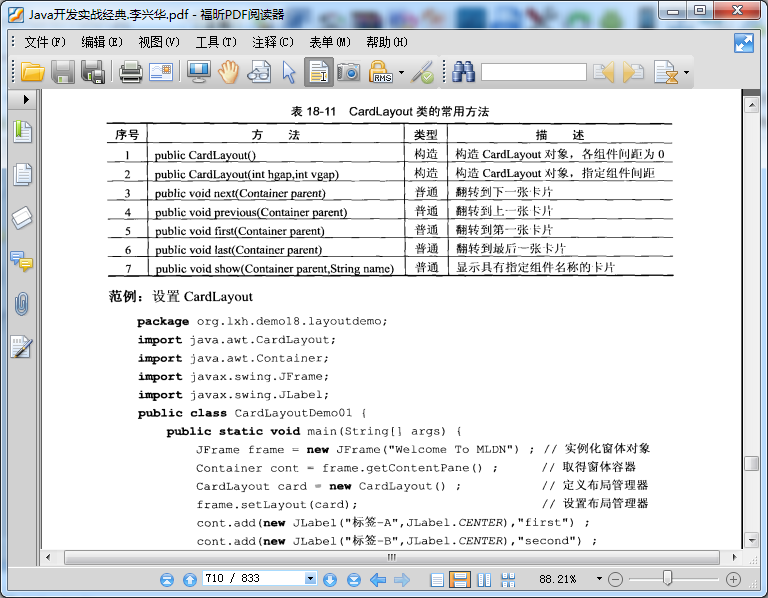java开发实战经典这本书讲解仔细,透彻,让我了解到好多以前没有学到的内在的、深入的知识点。而且用了很多形象的图形,比喻的表达方式来帮助读者理解。书中的例子也很有启发性。内容丰富,讲了好多教材上没讲的东西。