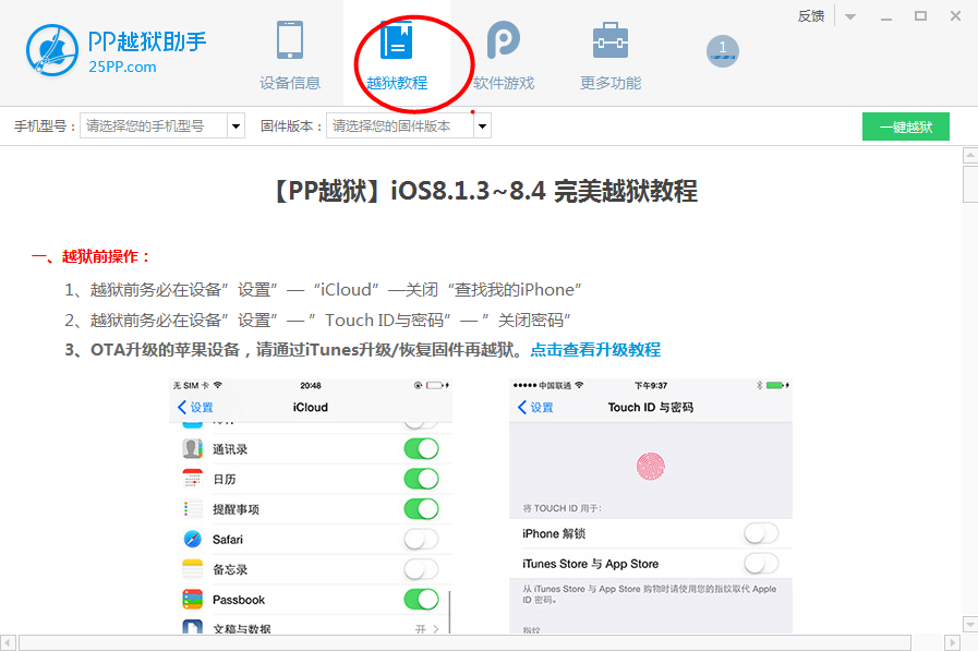 只需要点击越狱教程,就能够跟着操作来进行越狱