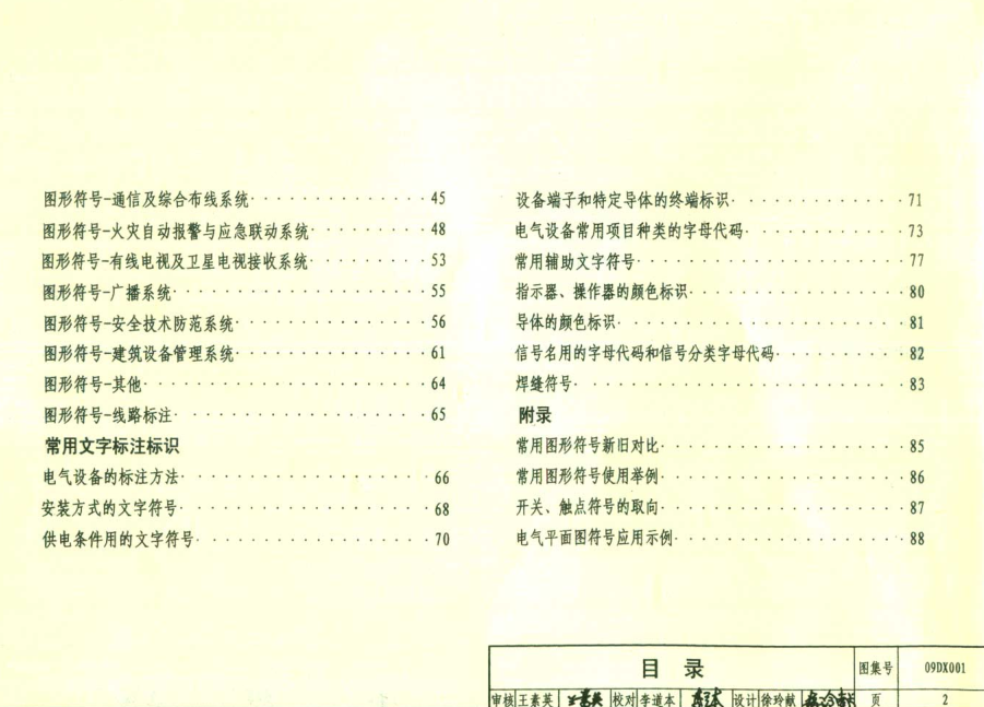 09DX001《建筑电气工程设计常用图形和文字符号》适用于一般新建、改建和扩建的工业和民用建筑工程中的电气工程设计,也可供编制、实施工业与民用建筑电气工程技术文件时使用。