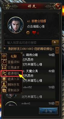 方法三:按F打开好友界面,在好友界面选中想要组队的玩家名字,左键点击后在弹出的菜单中选择“邀请组队”,对方同意后,组队完成。