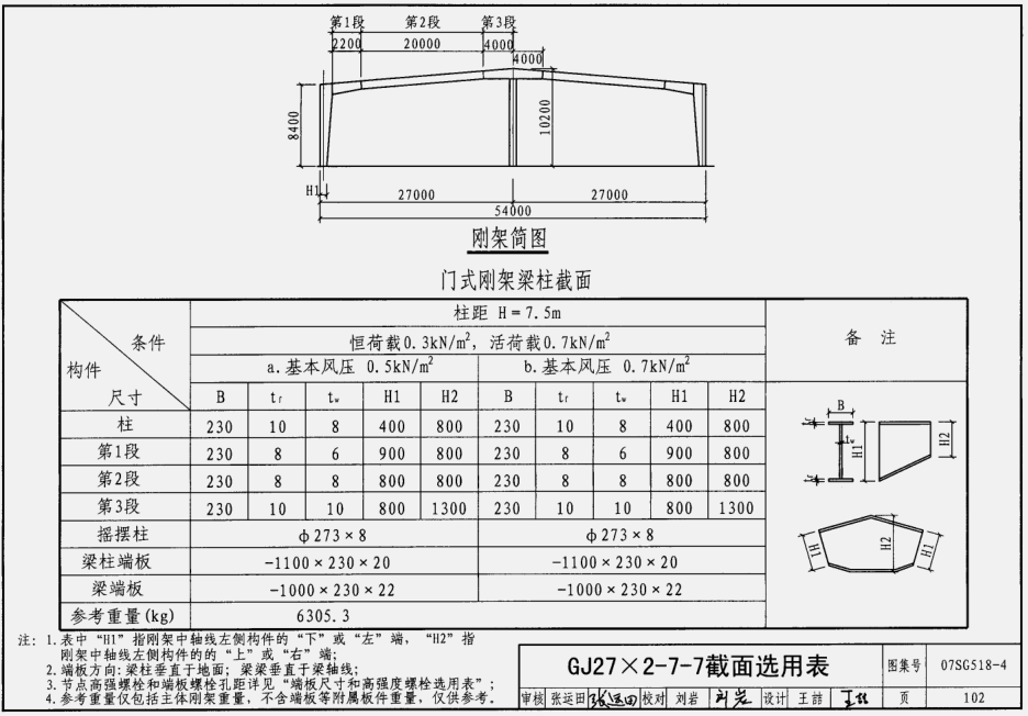GJ27×2-7柱传给基础的力、支撑系统及山墙柱 103