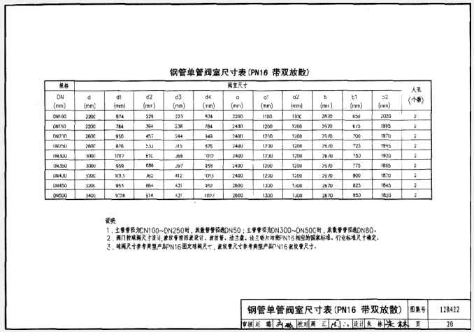 钢管单管阀室尺寸表(PN16 带双放散) 20