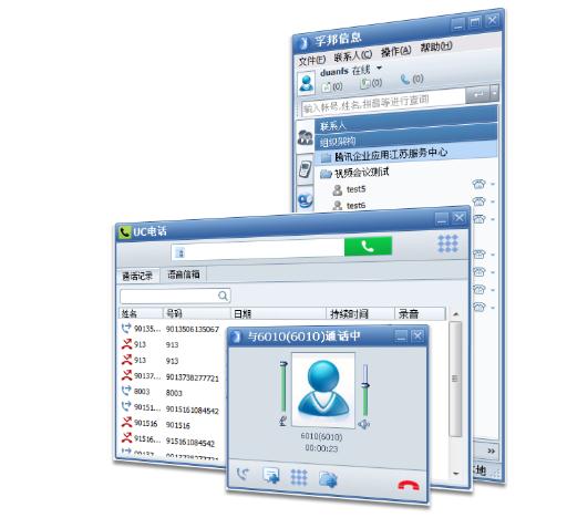 基于腾讯通RTX即时通讯平台开发的IP电话插件,可智能连通电脑终端、固定电话、移动电话等各类终端设备,方便地提供语音通讯、语音留言、多人通话、即时信息等多种应用体验方式。