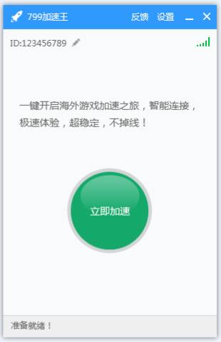 799加速王是一款永久免费的专业海外加速软件,使用独家国际网络加速服务,软件去除所有繁琐设置,只需一键点击立即智能加速。 使用799加速王将帮助您改善网游速度、减少网络延迟、拒绝频繁掉线,确保顺畅游戏。