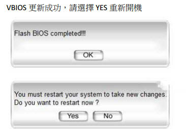 5. 更新结束后请重新启动您的计算机,以便完成更新 VGA BIOS 之步骤。