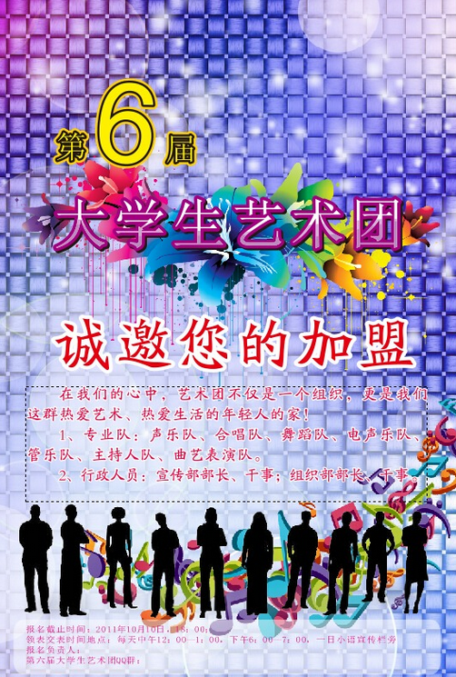 大学生艺术团招新海报素材,东坡小编给大学生社团干部准备,下学期会有大批新手入校,早做准备!